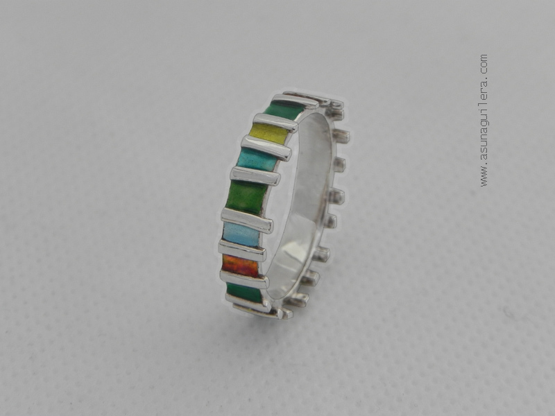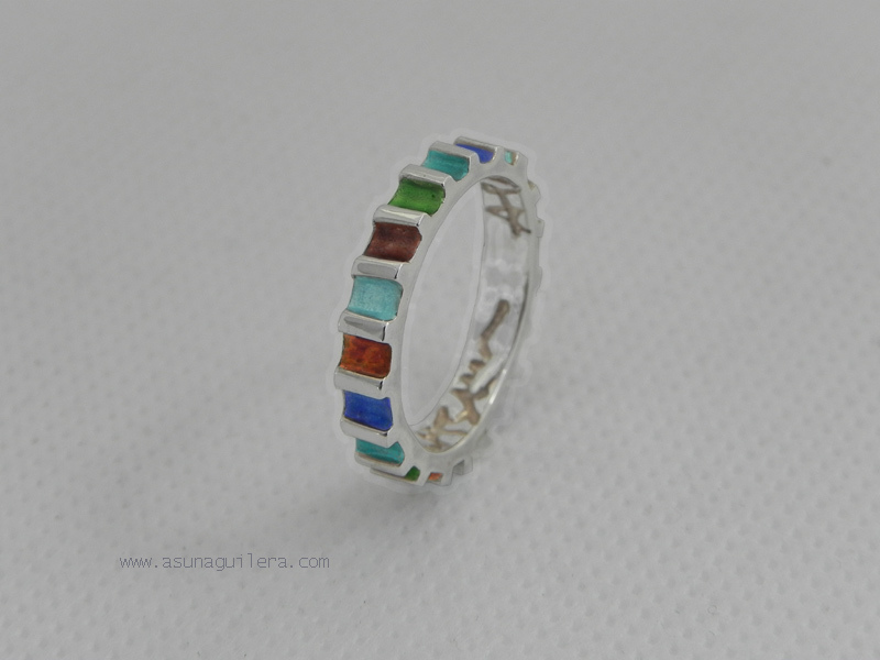 Los anillos con Esmalte al Fuego son anillos delicados, frágiles. El Esmalte al Fuego es un vidrio y - como cualquier vidrio- se puede llegar a romper a causa de golpes y tensiones. No son anillos aptos para trabajar, practicar deportes ó labores domésticas.